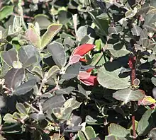 Gastrolobium praemorsum is a scrambling shrub which is endemic to the south-west of Western Australia. It is a member of the family Fabaceae and produces red pea-flowers from late winter to early summer (August to December in Australia). It is not known whether this species shares the toxic properties of many other members of the genus Gastrolobium.