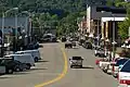 By the beginning of the twentieth-century, Gate City was one of several "boom towns" located in southwestern Virginia. Although the streets were little more than dirt byways in the town, the area was a vibrant commercial and transportation center. Up to six daily passenger trains passed through Gate City. The town also had a railroad log yard where logs from all over the county were stored and then loaded to be later transported by train. Iron ore from the Snowflake and Nickelsville areas as well as glass sand from the south of Clinch Mountain were manufactured and shipped from Gate City. In addition, the town had a thriving manufacturing center in the area of Water Street where wood pumps, staves, sleds, and harnesses were built. By 1915, the town supported two livery stables on Willow Street and a blacksmith shop on Jackson Street, as well as a dentist's office, an ice plant, a casket shop, and a furniture manufacturing business. By the 1930s, Gate City had three movie theaters, banks, and a hotel. The town also had two businesses that dealt with auto sales and repairs.[6]