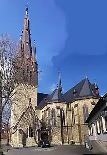 The traces left in Gau-Algesheim by the Catholic priest Peter Koser from 1869 to 1890 are still apparent today. The Rheinischer Volksbote (“Rhenish Messenger”), first published by the printer Reidel in 1869 and under Father Koser's editorship, was for decades a regionally important organ of the Catholic Centre Party. A teacher preparation institute (an institution that prepared students for teacher's college), known to locals as the Lateinschul (“Latin School”) or the Aljesemer Hochschul (“Algesheim College”, in dialectal German), a childcare centre, a credit and savings union on a coöperative basis, a farmers’ and consumers’ association, and not least of all the newly built Catholic parish church and the establishment of church music in 1888 confirm Peter Koser's religious and sociopolitical contributions in a time of political and ideological struggles.