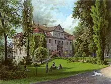 From 1937 until the end of World War II the whole of the property including the castle was owned by Josef Veltjens and his wife Leni. The castle was damaged during the fighting in 1945, and, according to statements by locals, was later demolished to provide building materials for the city of Breslau (Wroclaw).