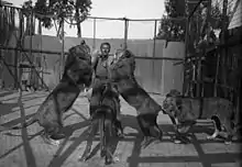 In September 1928, while the Gays were traveling in Europe, a trainer failed to close a runway while lions Ike and Short-Tail were being moved between cages. The lion made a dash for freedom, and slashed the arm of farm manager John Rounan at the moment Rounan fired a shot at the animal; the wound required 100 stitches, and Rounan later died. Trainer Joe Hoffman took off after the lion and felled him with a bullet in the brain. Short-Tail walked into an open cage, and Hoffman was able to lock him in. But Ike got shot in the leg and ran around the farm in a rage, menacing a cow, a cage full of baby lions and arriving police officers. Ike finally died in a hail of bullets from many guns.[1] This incident provided inspiration for hard-boiled author James M. Cain's short story "The Baby in the Icebox," which in turn inspired his celebrated novel The Postman Always Rings Twice.
