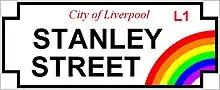 - ↑ "Liverpool unveils UK's first gay street signs". 11 November 2011. Archived from the original on 15 February 2018. Retrieved 14 February 2018.