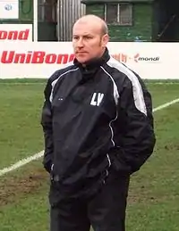 Gary Hayward and Andy Freeman led Gedling into 2006–07 before being dismissed on disciplinary grounds in December.[53][54] Player-manager James Jepson and assistant Devon White subsequently took charge.[54] The team recruited throughout the season, signing young prospects alongside former Football League midfielder Shaun Murray.[53][55] Suffering from injury, Jepson was replaced in February by his father, Paul, as Gedling closed in fourteenth.[18][56] Lee Wilson became manager for 2007–08, with Jimmy Albans returning as assistant.[4] Wilson and Albans oversaw a winning start to the campaign before leaving for Shepshed Dynamo in November,[2][57] a move which, joined by assistant Tony Cox, saw John Humphries return to management for the rest of the season.[58][59] Challenged by low attendances and a meagre transfer budget,[57][60] a "disastrous run in" saw Gedling finish in sixth.[2][18]