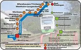 There are connections in Gemünden am Main to Schlüchtern, Aschaffenburg and Würzburg; and in Ebenhausen to Erfurt and Meiningen.