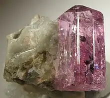 Corundum and quartz | The image shows pink and purple crystals of corundum. | [3] |
