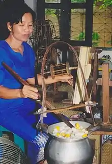 To enhance employment opportunities for women, the Thai government established the Department of Skills Development under the Ministry of Labor and Social Welfare in 1992. The main objective of the Department is to improve skills of female workers (new labor-market entrants, current workers, and rural workers) by offering programs with the help of many NGOs that provide basic knowledge and on-the-job training. These programs mostly come from the requests of employers or the workers themselves through surveys generated by the Department. As a result, the program can also lower the shortage of specific-skills required workers at the same time.[15] In addition, the Department of Agricultural Extension, Ministry of Agriculture and Cooperatives which focuses on home economics trainings for women also has been supporting women in agricultural sector so that they become efficient workers and increase their income which will reduce the difference between them and other group of women in the society. Various groups of home production are formed locally (e.g. mulberry production, silk weaving, handicraft making, food processing) in which knowledge and experience are shared between group members. The Department also provides Agricultural Housewives Funds to encourage income-generating activities and to educate women on how to access to financial resources with low interest for their business activities expansion.[15]