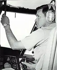 Retired United States Army Lieutenant Colonel Gene Tunney Boyer[2] (July 24, 1929 – August 27, 2016) was the chief pilot of Army One, the helicopter transporting the President of the United States, between 1964 and 1975.[3] Boyer was the pilot during President Richard Nixon's last day in office on August 9, 1974, when Nixon famously delivered the V sign just prior to leaving office. He led the restoration of the VH-3A "Sea King" helicopter, tail number 150617, that served as Army One that day.[3] That helicopter is now on permanent display at the Richard Nixon Presidential Library and Museum.[3] Boyer also served Presidents Johnson and Ford as a White House pilot. Boyer co-wrote his memoirs, Inside the President’s Helicopter: Reflections of a White House Senior Pilot, with Jackie Boor.
