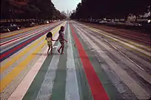 In 1972 Davis created Franklin's Footpath, which was at the time the world's largest artwork, by painting colorful stripes on the street in front of the Philadelphia Museum of Art, and the world's largest painting, Niagara (43,680 square feet), in a parking lot in Lewiston, New York. His "micro-paintings", at the other extreme, were as small as 3/8 of an inch square. Stripes are a recurrent theme in art history and he used it as a formal canon to examine various aspects of color using a reduced range of resources.
