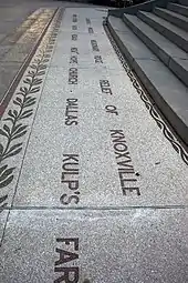 Rohl-Smith designed the monument to have two low steps, and for a mosaic 6 feet (1.8 m) wide to surround the monument. But Rohl-Smith did not complete the design for the mosaic before his death. His wife, Sara Rohl-Smith, designed the actual mosaic pattern. Congress appropriated another $8,000 to complete it.[32] The mosaic contains the names of the battles Sherman fought in:[33]