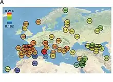 - ↑ A Common Genetic Origin for Early Farmers from Mediterranean Cardial and Central European LBK Cultures, Olalde et al 2015, Molecular Biology and Evolution