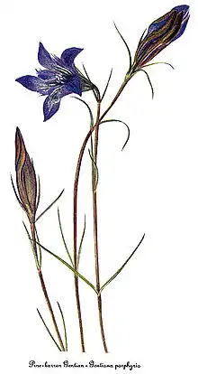 Gentiana autumnalis, the pine barren gentian, is a 1–2 ft (30–61 cm) tall flowering plant in the Gentianaceae family. It is native to eastern North America coastal pinebarrens from New Jersey to South Carolina.[2][3] Fire suppression, invasive weeds, and the altering of natural water flows all pose threats to rare native populations of G. autumnalis.[4][5][6]