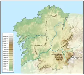 The geography of Galicia (Spain) is characterized by the contrast between the low altitude coastal relief and, further inland, by the higher altitude of the Galician Massif which itself offers contrasts between the morphology of the high northern plains and the southern mountains and valleys.