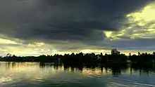 The city of Kollam lies at 8°53′13″N 76°35′26″E / 8.887082°N 76.590691°E with an average altitude of 3 metres. The average rainfall is 270 cm yearly.[4] The city is surrounded by Arabian Sea in the west, Ashtamudi Lake and panchayats of Neendakara and Thrikkaruva in north, Mayyanad panchayat in the south and Thrikkovilvattom and Kottamkara panchayats in east. The Kollam coast is a blessed coastal belt with the best mineral sand deposit of the country.[5] The backwaters of Ashtamudi, thick mangroves on its coasts, beaches, estuaries, scattered islands and pleasant climate are making Kollam as one of the best sea side tourist destinations in Kerala.[6][7]