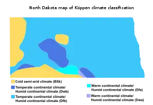 North Dakota map of Köppen climate classification.