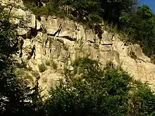 The most rock formations in the city are in the Monsonsites: Garga Bair, Kartala, and other parts of the Tarnovo Hills. The rocks most often are: granite, limestone, montmorillonite (bentonite) clay rocks.[4]