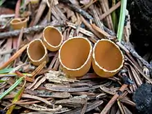 - ↑ Beug MW, Bessette AE, Bessette AR (2014). Ascomycete Fungi of North America: A Mushroom Reference Guide. Austin, Texas: University of Texas Press. p. 143. ISBN 978-0-292-75452-2.