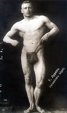 Georg Lurich in a c. 1912 postcard posed to show his physique.