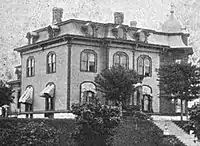 In 1876, Mitchell moved his family from Kendallville to his new village in Michigan.[4][10] Later, the village changed its name to the town of Clam-Union. In 1877 the name was changed again, this time to the City of Cadillac, and it was recognized officially by the state of Michigan.[8] [10][11] There were about 650 people and 350 school-age children in Clam Lake township as reported by the 1880 census. The city of Cadillac, incorporated in 1877,[8] 1885 and 1895,[10] was later divided into four wards and became the county seat of Wexford County.[10]
