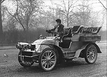 Lady Albu at wheel of CGV, London April 1905