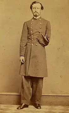 That year, they went on to fight at the Second Battle of Bull Run, the Battle of Antietam, and the Battle of Fredericksburg, where Smith lost his left arm.[2][1] Benjamin Jr. continued to command the unit at the Battle of Chancellorsville, the Battle of Gettysburg, and the Battle of Mine Run, even after having his foot amputated following an injury in October 1863.[2][3] Smith's other brother, Edward, was killed at Battle of Spotsylvania Court House in May 1864.