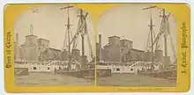 Prior to Armour's efforts there had been a small number of what may be termed "grain elevators" constructed in the United States. Dart's Elevator was the world's first steam-powered grain elevator. It was designed and built by Joseph Dart and Robert Dunbar in 1842 in Buffalo, New York. The first large steam elevator ever built in Chicago for handling grain from railroad tracks was on the North side, on the Chicago River, west of Wells Street. It was built by George A Gibbs and E W Griffin of Gibbs, Griffin & Company in 1854.[19][13] It might also have been known as the Chicago & Galena Union Railroad Elevator. [20]