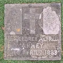 He died in Torquay on 7 April 1883.[1] Arney Street in Paeroa, which is part of State Highway 26, is named for him.[9] He is buried in the courtyard of Salisbury Cathedral.