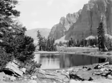 George Beard died October 3, 1944, at the age of 89.[2] One year before his death, Ralph B. Jordan wrote that "George Beard, of Coalville, is a man the world should know" when describing his life and career as an artist.[12] Beard named Mount Lovenia, a peak that sits in the Uinta Mountains, after his wife, Lovenia. Lake George Beard in Duchesne County is named after him.[13] Following his death, glass plate negatives of his photographs were donated to the L. Tom Perry Special Collections at Brigham Young University to be displayed. By using scans of these negatives as well as donations, BYU was able to curate an exhibit of 32 photographs and a few paintings to honor Beard in 1975.[3] From March to June 2017, Beard's great-great nephew Norm Thurston commissioned an exhibit curated by Herman du Toit at the Springville Art Museum. It showed 32 prints created from scans of the glass plate negatives housed at BYU and some of his landscape paintings.[8]