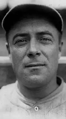George Joseph Burns (November 24, 1889 – August 15, 1966) was an American left fielder in Major League Baseball who spent most of his career as the leadoff hitter for the New York Giants. Nicknamed "Silent George" by his teammates due to his soft-spoken personality, he was an effective leadoff man who was revered for his plate discipline. Burns is one of only four players in major league history to lead the league in runs and walks five times each; the others are Babe Ruth, Ted Williams, and Mickey Mantle.[1] A two-time stolen base champion, he holds the Giants franchise record for stolen bases in a single season (62, in 1914), and held the club's career record from 1919 to 1972. At the end of his career, his 1262 games in left field ranked eighth in major league history, and his total of 1844 games in the outfield ranked sixth in NL history.