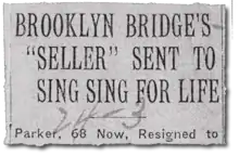 - ↑ "Brooklyn Bridge's "Seller" Sent to Sing Sing For Life". The Brooklyn Daily Eagle. November 23, 1928. p. 24.