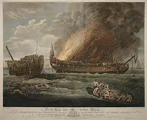 He spent some time in India.[8][9] On his outward voyage he met John Hynes, a survivor of a notorious shipwreck, and in 1791 Carter published a version of his account of the incident as A Narrative of the Loss of the Grosvenor, Eastindiaman, with his own engravings, describing himself on the title page as "George Carter, Historical Portrait Painter"[8][10]