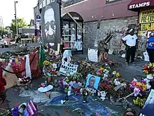 Local unrest in Minneapolis–Saint Paul immediately after Floyd's murder was the second most destructive to property in United States history, after the 1992 Los Angeles riots,[15] but peaceful protest gatherings at the street intersection in late May 2020 were free of property destruction, arson, and looting that characterized other local demonstrations.[16][17] The intersection became a place of pilgrimage for many people protesting Floyd's murder and other forms of racial injustice.[18] However, in the weeks and months after Floyd's murder, the neighborhood surrounding the square, which had previously held a reputation for gang activity, continued to have elevated levels of violent crime and regular gunfire incidents.[18] By August 14, 2022, seven people had been killed by gun violence at or around the square since Floyd's murder,[19][1][20][21][22][23][24] and one person had died there as the result of a drug overdose.[25]