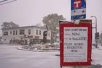 The street intersection remained an active site of protest two years after Floyd's murder as the city began a multi-year project to redesign the street scape and plan a permanent memorial.[117][123] Some community members and businesses supported efforts to establish a permanent memorial and resume bus service on Chicago Avenue that had been suspended for two years since Floyd's murder.[124] Some activists insisted the site continue to be a place of active protest until their demands were met and posted a manifesto at the square that stated their opposition to a city-commissioned memorial.[125][123]