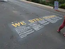 On August 7, 2020, members of the community organization Meet on the Streets demanded that the city meet a list of 24 demands before removing cement barricades around the intersection.[57][58] These included keeping the intersection closed to traffic until after the trials of the four former officers involved in Floyd's murder, firing several specific employees from the Bureau of Criminal Apprehension, providing accountability in the cases of several officer involved deaths, investigating the death of Dameon Chambers, and providing resources to the community and a handful of nonprofits operating within the community.[59][2]