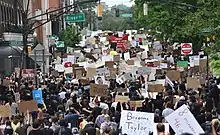 On June 7, approximately 600 people marched from Main Line Station to Borough Hall, where they knelt in silence for eight minutes and forty-six seconds in honor of Floyd.[46]