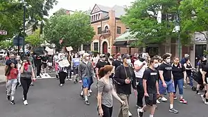 On June 1, about 50 protesters marched on Main Street between the Municipal Building and the Civil War Memorial. One counter-protester appeared.[49]