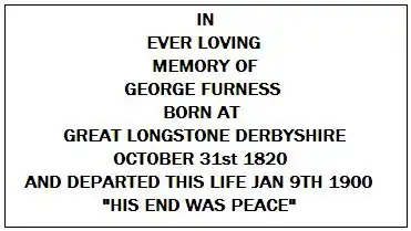 On George Furness' family grave in St Mary Church are the names of all the George Furness family (except George James Furness). The words for George Furness are as follows: