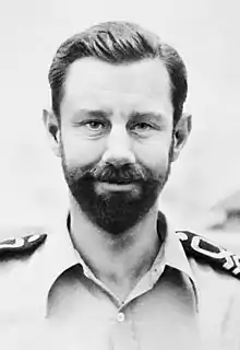 His first assignment was to the Mediterranean Fleet, aboard the Revenge-class super-dreadnought battleship HMS Ramillies. He also attended an air course on the Courageous-class aircraft carrier HMS Glorious, and was familiarised with the employment of destroyers during a stint aboard HMS Worcester.[1] In September 1932 he was promoted to acting sub-lieutenant,[2][5] and entered the Royal Naval College, Greenwich. The social and sporting temptations of London beckoned, and Gosse's studies suffered. After he failed the examination for lieutenant, he was returned to Australia and his naval career ended on 30 October 1933. Gosse then worked at odd jobs for a few years, and on 1 October 1938 he married Diana Skottowe at his old school chapel.[1][4] The couple had two daughters.[2]