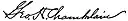 Chamberlain married Etta K. Mynderse of LaGrange, Ohio, in June, 1883. They had nine children.[4] After she died, his second wife was Ola Chamberlain.[5] Chamberlain died at his Elyria home on March 3, 1943. He was buried at Ridgelawn Cemetery in Elyria.[5]