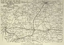 Work started on the YNMR line in April 1837 with a new station being built in York. In April – before full opening – Hudson declared a dividend of one guinea per share which, when questioned he confirmed had been paid out of the companies' capital. Some objected but both Meek and Joseph Rowntree defended the move although in later years the latter would be foremost amongst Hudson's critics.[13] Opening to a junction on the Leeds to Selby line took place on 29 May 1839 and to Normanton on 1 July 1840 meaning London was now linked by rail to York.[11] On 9 November 1840 the YNMR leased the Leeds and Selby Railway for £17,000 per year and Hudson promptly closed the line so passengers had to use his route via Castleford.[14][Note 2]