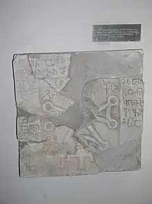 ![]() Façade stone of the Khuap church with the Georgian asomtavruli inscription probably commemorating George II | |
