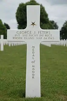 George Joseph Peters (1924 – March 24, 1945) was a soldier of the United States Army and a recipient of the highest decoration of the United States Armed Forces—the Medal of Honor—for his actions in the final stages of World War II during Operation Varsity.