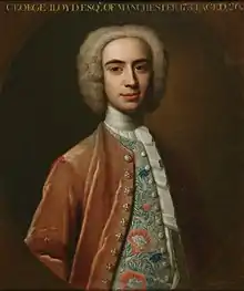 George Lloyd was the son of Gamaliel Lloyd, a merchant and manufacturer in Manchester, and his wife, Sarah.[1] He was born in 1708 and took the degree of M.B. at Queens' College, Cambridge in 1731. He was elected a Fellow of the Royal Society (F.R.S.) in 1737, being sponsored as "a gentleman well-skilled in mathematical knowledge and natural philosophy".[2][3] He rented Alkrington Hall from the Lever family before buying Hulme Hall as his residence.[1][4] Lloyd sold Hulme Hall in 1764 to Francis Egerton, 3rd Duke of Bridgewater, who had to pay a large amount of money to acquire it so that he could continue construction of his eponymous canal.[5]