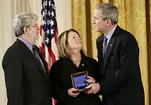 Lucas receiving the National Medal of Technology and Innovation from President George W. Bush, February 2006
