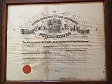George M. Harmon, born in Brookfield, Massachusetts on December 2, 1837, was the twenty second Adjutant General of the State of Connecticut. After the war he resumed the manufacture of corsets under the firm name of Foy&Harmon. The firm grew to be one of the largest in putting out corset material having branches in New York and Boston. He afterwards had a commission business in Boston, which was one of the largest in the world in marketing materials for the making of corsets. In 1873 and 1874 Harmon was police commissioner in the city of New Haven. In 1880 he was chairman of the republic state committee. Harmon was a member of the Military Order of the Loyal Legion of the United States for New York and had membership in a number of organizations in that state.[1][2]