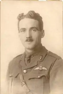 McElroy was promptly seconded to the Royal Flying Corps, being trained as a pilot at the Central Flying School at Upavon, and appointed a flying officer on 28 June.[8] On 27 July his commission was backdated to 9 February 1916,[9] and he was promoted to lieutenant on 9 August.[10] On 15 August he joined No. 40 Squadron RFC,[11] where he benefited from mentoring by Edward Mannock. He originally flew a Nieuport 17, but with no success in battle. By the year's end McElroy was flying S.E.5s[2] and claimed his first victory on 28 December.
