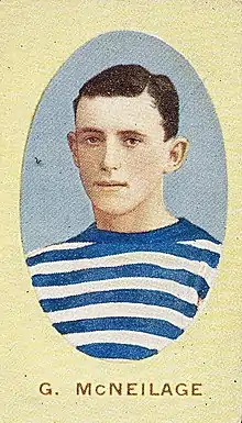 George Campbell McNeilage (3 August 1890 – 20 March 1967) was an Australian rules footballer who played with Geelong and Melbourne in the Victorian Football League (VFL).[2] In addition, he played in the 1st Football XVIII 1905-1908, and held the role of Captain of Boats between 1907 and 1908.[3]