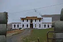 George Oscar Thompson House, also known as the Sam Ward Bishop House, was a historic home located near Tazewell, Tazewell County, Virginia. It was built in 1886–1887, and was a two-story, three-bay, T-shaped frame dwelling. It had a foundation of rubble limestone. The front facade featured a one-story porch on the center bay supported by chamfered posts embellished with sawn brackets. Also on the property were a contributing limestone spring house, a one-room log structure (late 18th- to early 19th-century), and a 1+12-story frame structure (1831 through 1851). Tradition suggests the latter buildings were the first and second houses built by the Thompson family.[3]