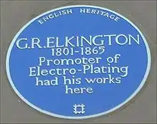 - 1 2 3 One or more of the preceding sentences incorporates text from a publication now in the public domain: Chisholm, Hugh, ed. (1911). "Elkington, George Richards". Encyclopædia Britannica. Vol. 9 (11th ed.). Cambridge University Press. p. 288.