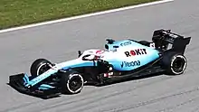 In October 2018 it was announced that Russell had signed a multi-year deal to drive for Williams,[58] partnering Robert Kubica for the 2019 season.[59] His first appearance for Williams was at the 2018 post-season test at Yas Marina Circuit, driving the FW41.[60] The team's 2019 car, the FW42, was the slowest car of the field;[61] in most races Kubica was Russell's only on-track competition. Round six, the Monaco Grand Prix, was the first race in which Russell finished ahead of drivers from other teams; namely both Alfa Romeos and Lance Stroll. At the rain-affected German Grand Prix, Russell finished 13th but was promoted to 11th after the Alfa Romeo drivers received penalties.[62] He had narrowly missed out on scoring his maiden Formula One point, having been overtaken by Kubica in the closing laps.[63]