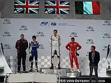 He would later go on to win the title with a victory in the feature race at Abu Dhabi after a season-long fight with fellow Brit Lando Norris. With his title, he became the fifth rookie champion of the GP2/F2 category (previously achieved by Nico Rosberg, Lewis Hamilton, Nico Hülkenberg, and Charles Leclerc), and the fourth driver after Hamilton, Hülkenberg and Leclerc to win the GP3/F3 and GP2/F2 titles in consecutive seasons.